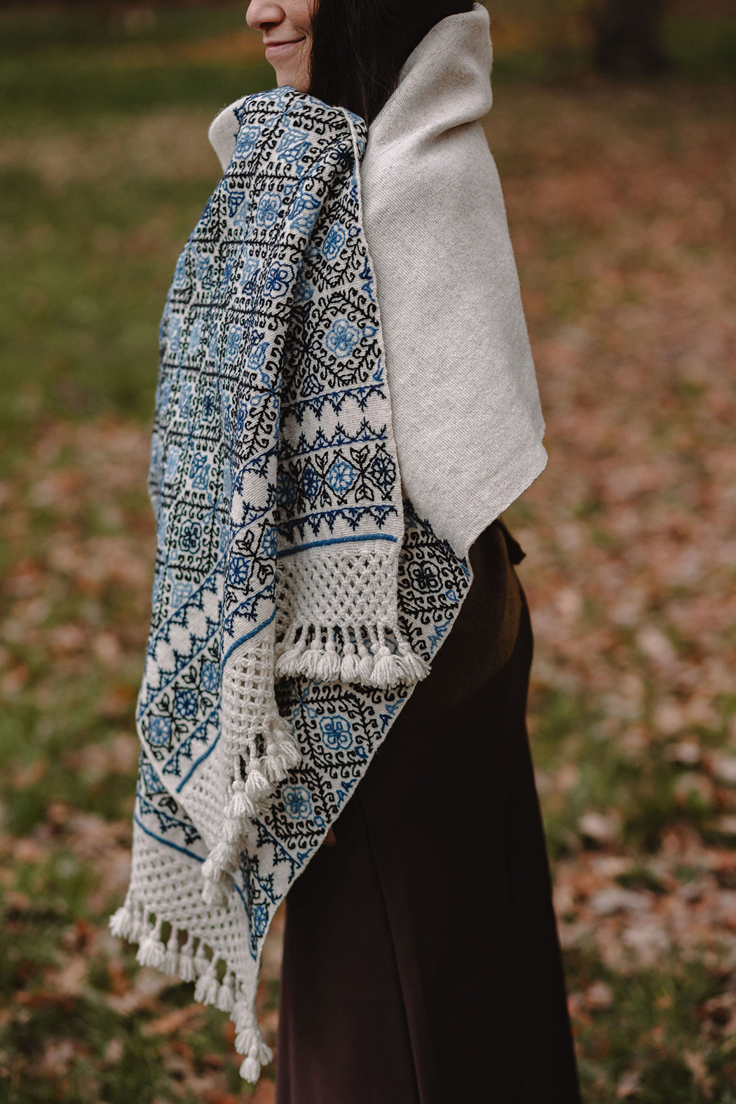 Chaque pièce se termine par un empuntado en macramé et des pompons doux au toucher. Le résultat est un châle vivant, authentique, qui porte l’odeur discrète de la laine naturelle, la chaleur de la main artisanale et la symbolique d’une culture profondément ancrée dans son territoire.